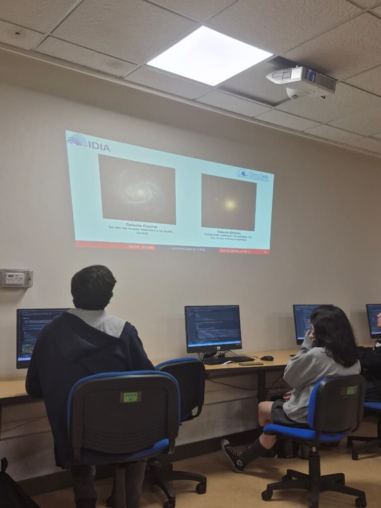 La jornada contempló un taller práctico, impartido por el estudiante de Doctorado en Astronomía en la Universidad de Chile Steve Jurado, donde las y los estudiantes pudieron conocer los distintos pasos para realizar la clasificación de galaxias a través de inteligencia artificial.